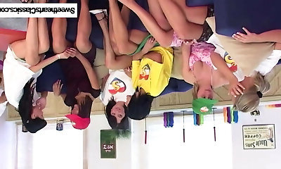 Eye catching college gals get rid of uniforms to work on soaking fuckboxes