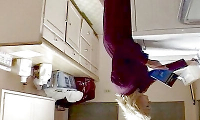 Girlfriend with zucchini fucked busty cougar in the kitchen, lesbians Pov.