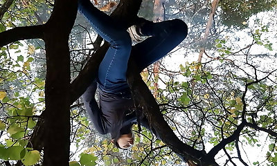 Woman climbed a tree to rub her cootchie on it - Lesbian-illusion