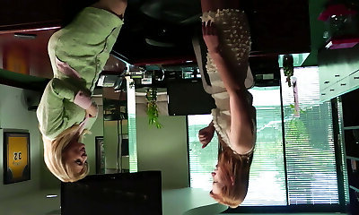 Big Tits Hot Blonde Boss gets caught by Big Arse Sizzling Dark Haired Secretary in Garter and Stockings in The Office