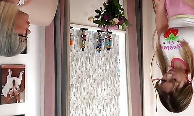 Dialogue with a blondie somehow always turns into a threesome lesbo hookup on the table