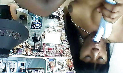 Crimson Ninja makes Isis Love suck a toy before she pokes it in her slit