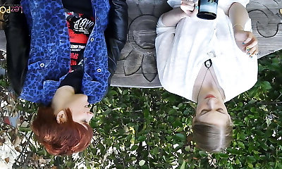 Brunette and redhead girls enjoy of lezzy sex in nature