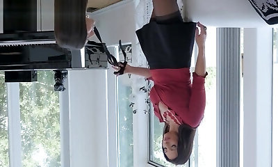 HORNY mature fem fucks TEEN with Belt Cock in the office