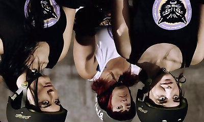 Asian dolls on the volleyball squad haze a new member with a strapon